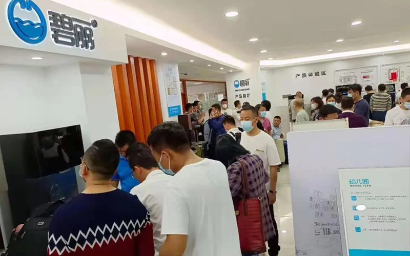 前來參觀的客戶對碧麗租賃系列產品、帶杯控技術的幼兒園溫開水飲水設備、高端Q8系列等產品十分感興趣,把碧麗產品體驗區(qū)圍了個水泄不通,碧麗營銷精英滿場跑地為客戶講解產品,場面熱鬧得很。